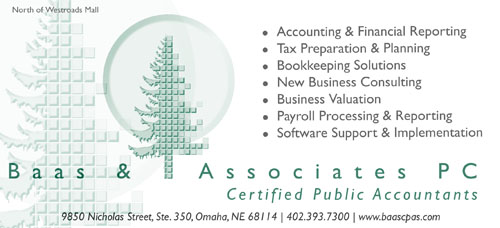 Baas & Associates, PC business operating business hours have been updated for 2024. As you may be aware our office offers professional accounting and reporting, tax compliance and planning, and various consulting services to business and individual clients throughout the United States and Midwest region, and provides a convenient location for our clients in Omaha/West Omaha and surrounding communitities to utilize. Please see our contact information on the Contact Us page of our website.